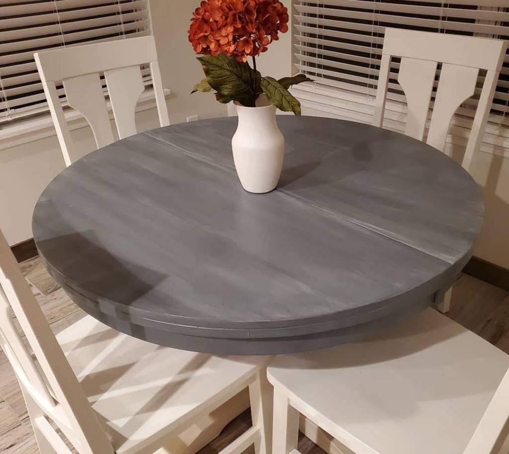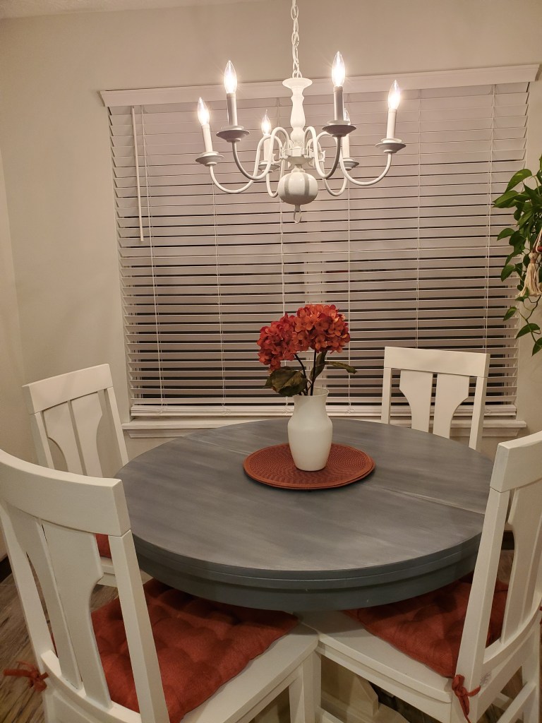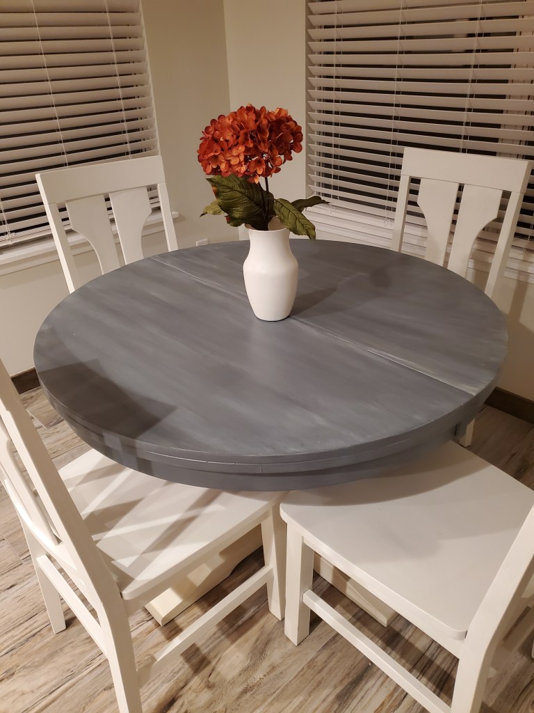 I found this table on Facebook MarketPlace after hitting up every thrift store within reasonable distance of my home, work and church (which covers a great distance) and had come up empty handed each time. I really had been hoping for a high top, square table. Instead I found a round, regular small table, with a leaf. Long story short, I was gifted the table for free from the family when I went to pick it up. We go to the same church and they insisted I just take the table. A total blessing and reminder that there are good people in this world!